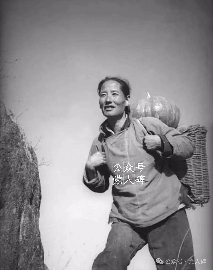 劳动英雄韩凤龄背着自己种的大南瓜,涞源, 1943年,白连生 摄