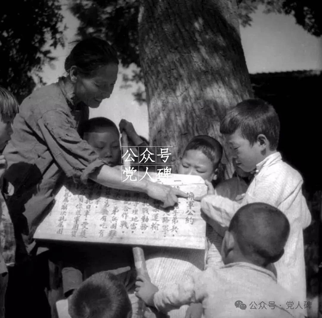 劳动英雄韩凤龄带小学生读《拥军公约》,1944年, 白连生 摄