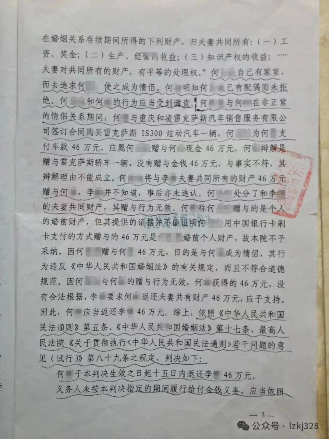 事实二:重庆市江北区人民法院“(2010)江法民初字第3163号”《民事判决书》认定,“何善良”(化名)在婚姻关系存续期间,“和何某在一次朋友的聚会上认识。继后,“何善良”(化名)极力迫求何某,使之成为情侣。”而且还赠送何某价值46万元的雷克萨斯1S300炫动汽车一辆。法院认为,“何善良”(化名)自己有家室而去追求何某,使之成为情侣。何某明知“何善良”(化名)已有配偶而未拒绝。“何善良”(化名)和何某的行为应当受到谴责。“何善良”(化名)的行为“违反婚姻法的规定,且不符合道德规范”。