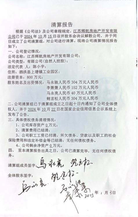 本人马永驰(身份证号:321324198807066238),住址:江苏省泗洪县双沟镇雪四村十七组14号,系江苏辉航房地产开发有限公司(下称“辉航公司”)的联合创始人及持股38%的法定股东,是本案的直接、核心受害人,具备完全的控告主体资格。