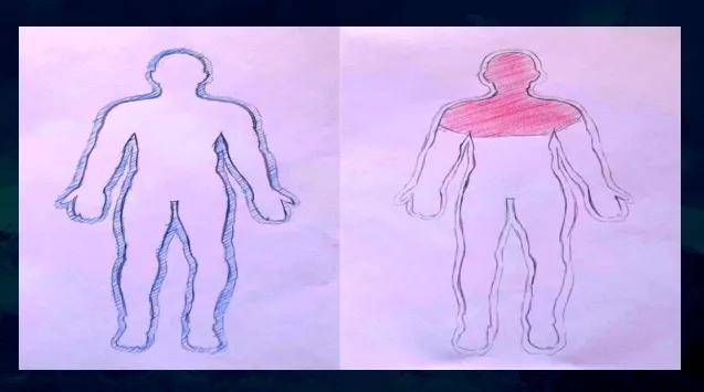 大家看右边图,人的上焦(头、心胸以上部分)是红的,说明上焦郁热明显,而外部的寒比较轻微,甚至没有。右边这个图,我们把它叫温病。