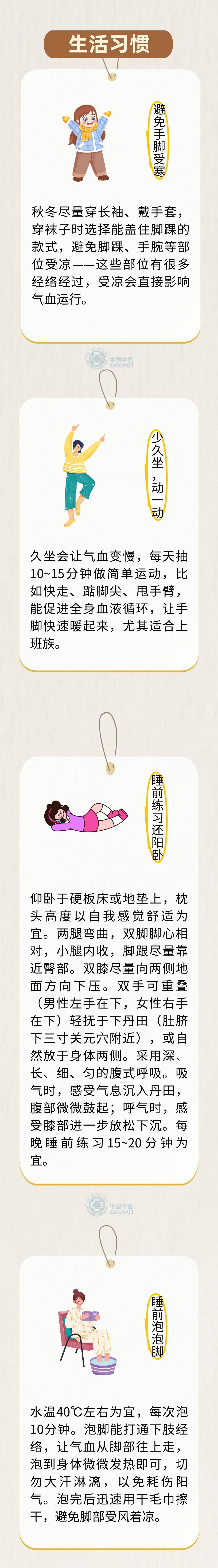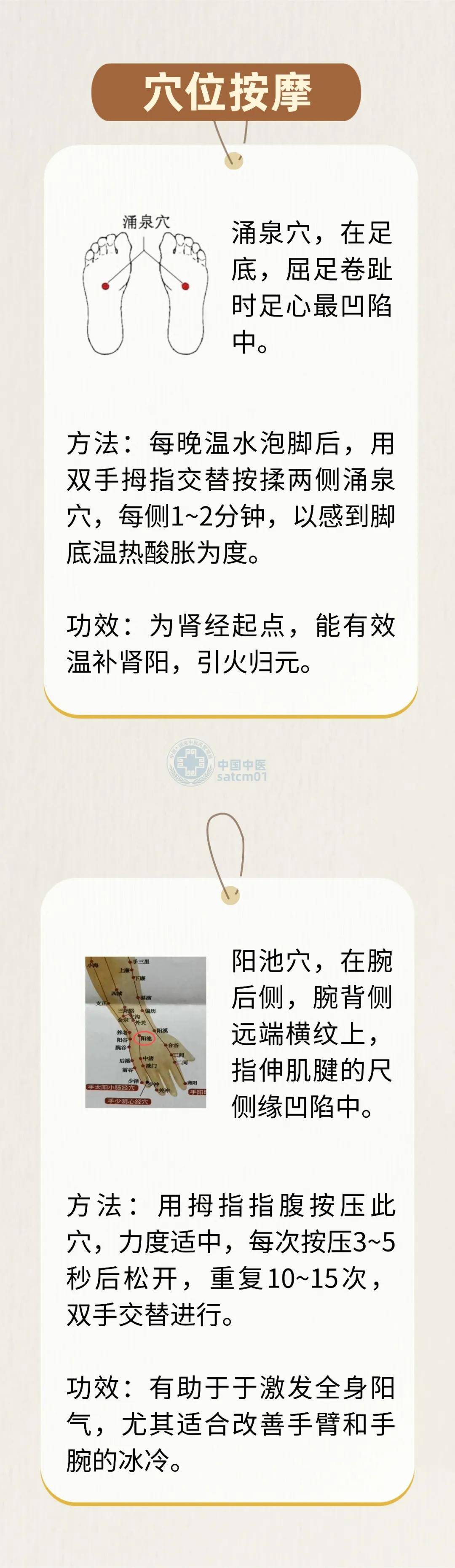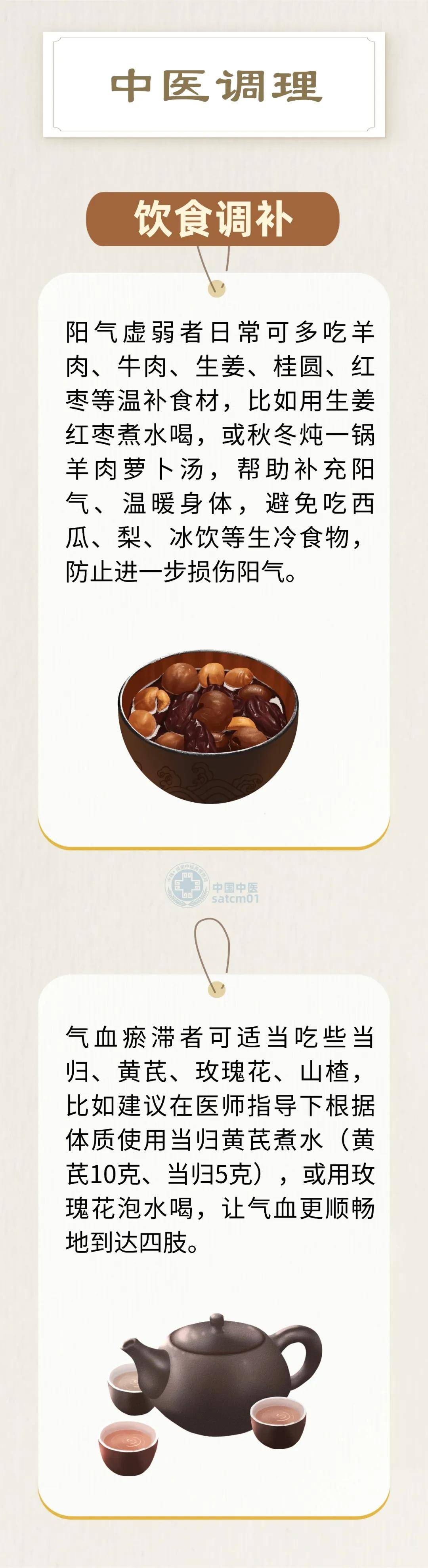 秋冬季节气温下降,不少人会出现手脚冰凉的情况,即使穿再多衣服,手脚也难捂热,甚至伴随怕冷、易疲劳、精神不振等问题。从中医角度来看,这多与阳气不足、气血不畅密切相关,通过针对性调理可有效改善。