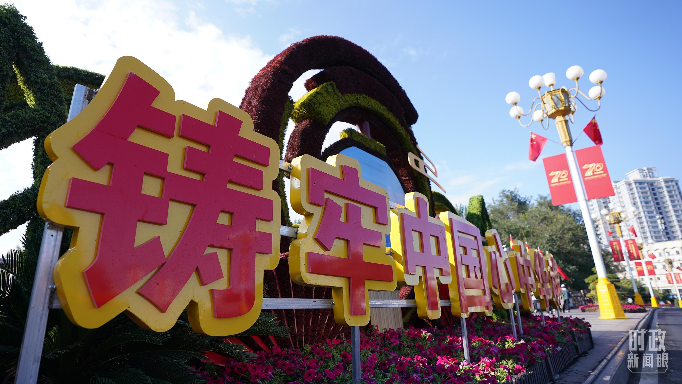 △乌鲁木齐街头的花坛。(总台记者李晋拍摄)