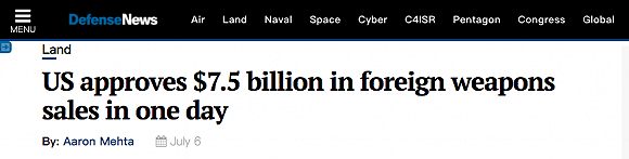 已经批准向5个不同国家进行价值近75亿美元的对外军售: