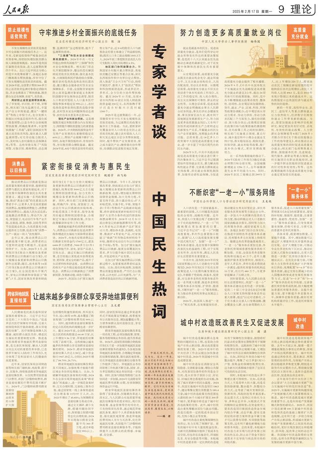 中国式现代化,民生为大。过去一年来,在以习近平同志为核心的党中央坚强领导下,我国高质量发展扎实推进,民生保障扎实有力。回顾一年来我国在发展中保障和改善民生的生动实践,诸多热词映入眼帘。它们不仅与百姓生活息息相关,更彰显着中国式现代化的民生内涵。我们就大家关心的一些民生热词,邀请专家学者分享感受、交流思考、展望未来,以飨读者。