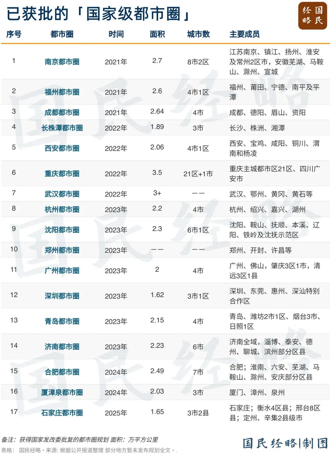 与此同时,我国共有30多个大型都市圈,目前已批复17个国家级都市圈,涵盖广州、深圳、南京、杭州、成都、重庆等重点城市。