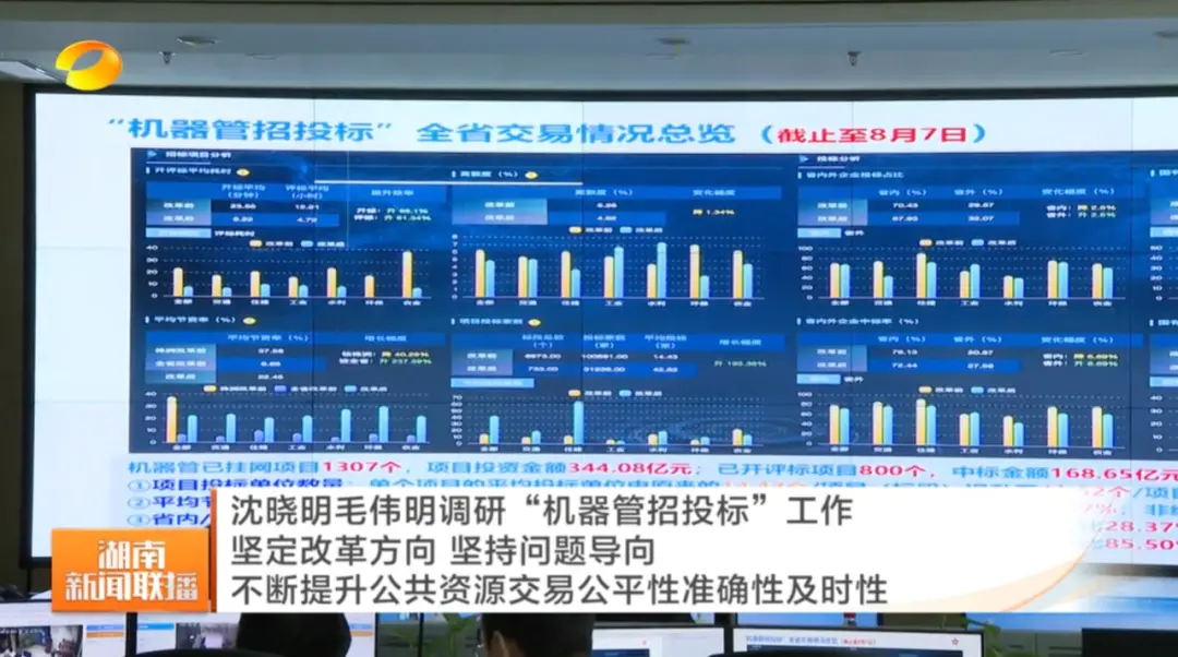 据《湖南日报》消息,8月21日,湖南省委书记沈晓明、省长毛伟明在省公共资源交易中心调研“机器管招投标”工作,强调要“坚定改革方向,坚持问题导向”。