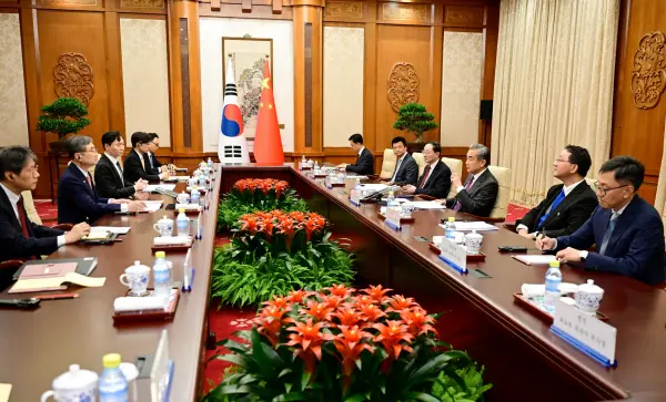 2025年9月17日,中共中央政治局委员、外交部长王毅在北京同韩国外长赵显举行会谈。