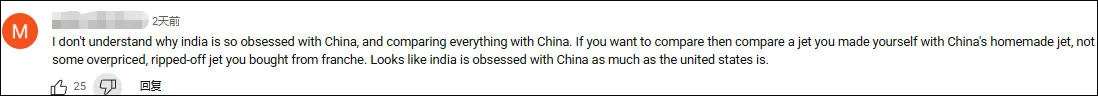 有网友被整懵了:我搞不懂印度为什么这么“痴迷”中国,啥都拿来跟中国比。如果要比较,那就拿自己造的飞机跟中国国产的飞机比,而不是拿从法国买来的那些高价货比,看来印度对中国的“痴迷”程度跟美国一样。