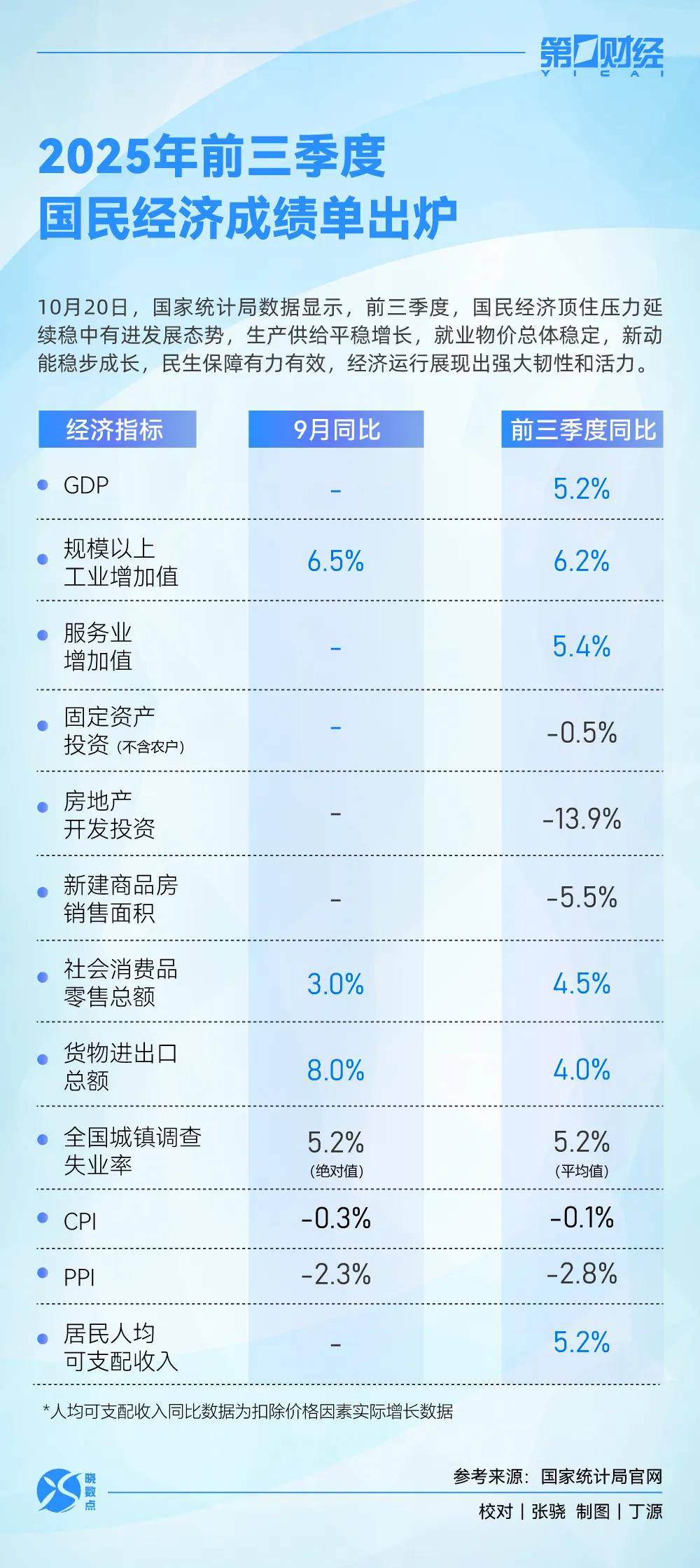 10月20日上午,国家统计局发布前三季度国民经济运行数据:
