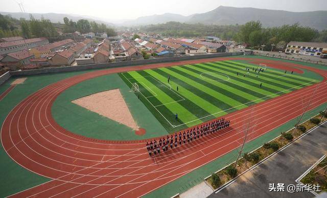 在位于山东潍坊市临朐县石家河村的临朐县弥水教育集团石家河校区,学生在操场塑胶跑道上进行体育锻炼(2025年4月17日摄)。新华社记者 徐速绘 摄