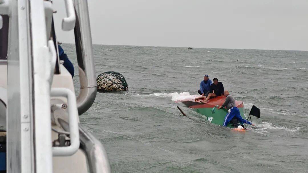 当日6时,1渔船从海口市新埠岛出发前往海上作业。8时许,海面突遇大风浪,渔船瞬间倾覆,船上人员全部落水。