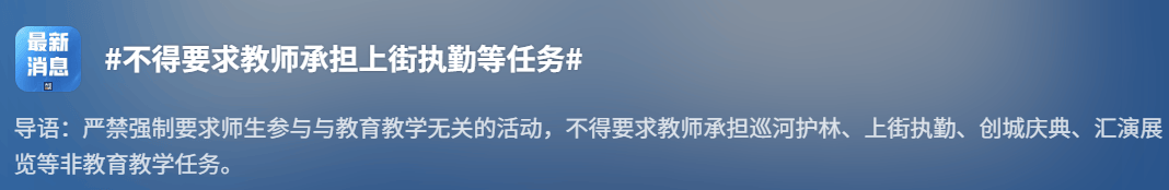 近日,教育部印发《关于进一步减轻中小学教师非教育教学负担若干措施的通知》,对深化中小学教师减负工作作出系统部署。11月10日,话题“不得要求教师承担上街执勤等任务”登上热搜第一。