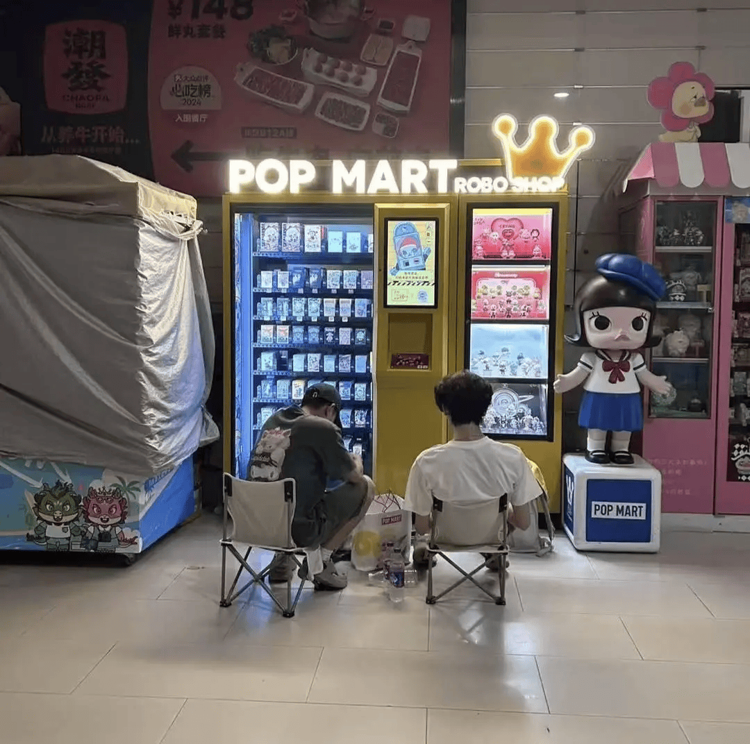 对于Labubu隐藏款,职业黄牛团队常雇佣数十人轮班蹲守,等自助售货机一上货就直接拿走。