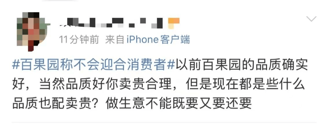 根据报道,社交媒体上,曾有不少网友吐槽,“太贵了”“月薪2万吃不起”“百果园随便买买,一百大洋就没了”“到底谁在吃百果园?”还有网友称,百果园越来越贵,质量却越来越差。