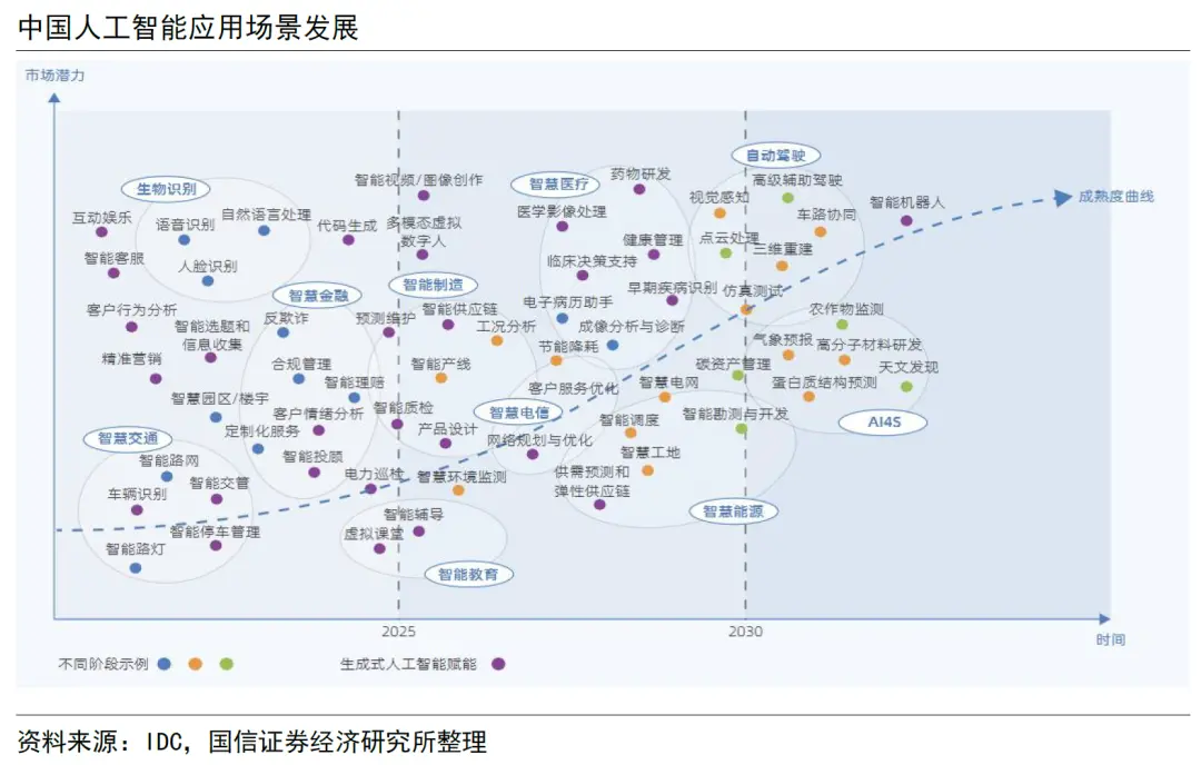 其二,率先实现从算力、算法到应用与生态完整闭环,形成“人工智能+”六大行动的集成优势,有望先行拓展产业化的庞大版图。