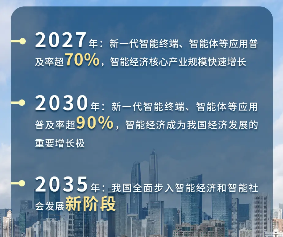 按照“三步走”路线图,2030年智能经济将成为重要增长极,2035年智能经济、智能社会将全面形成。