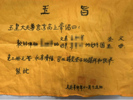 警方搜出的所谓“玉旨”(图源:中国反邪教网)