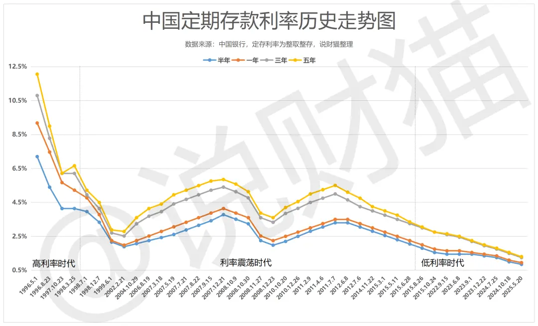 和历史上存款利率巅峰时期相比,如今的存款利率不断创新低。