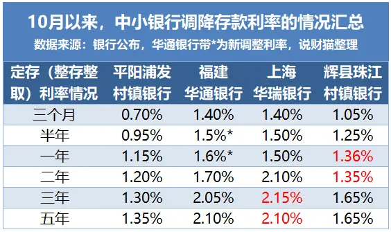 市场消息看,各地村镇银行或小银行的部分存款产品,下调幅度高达80个基点。