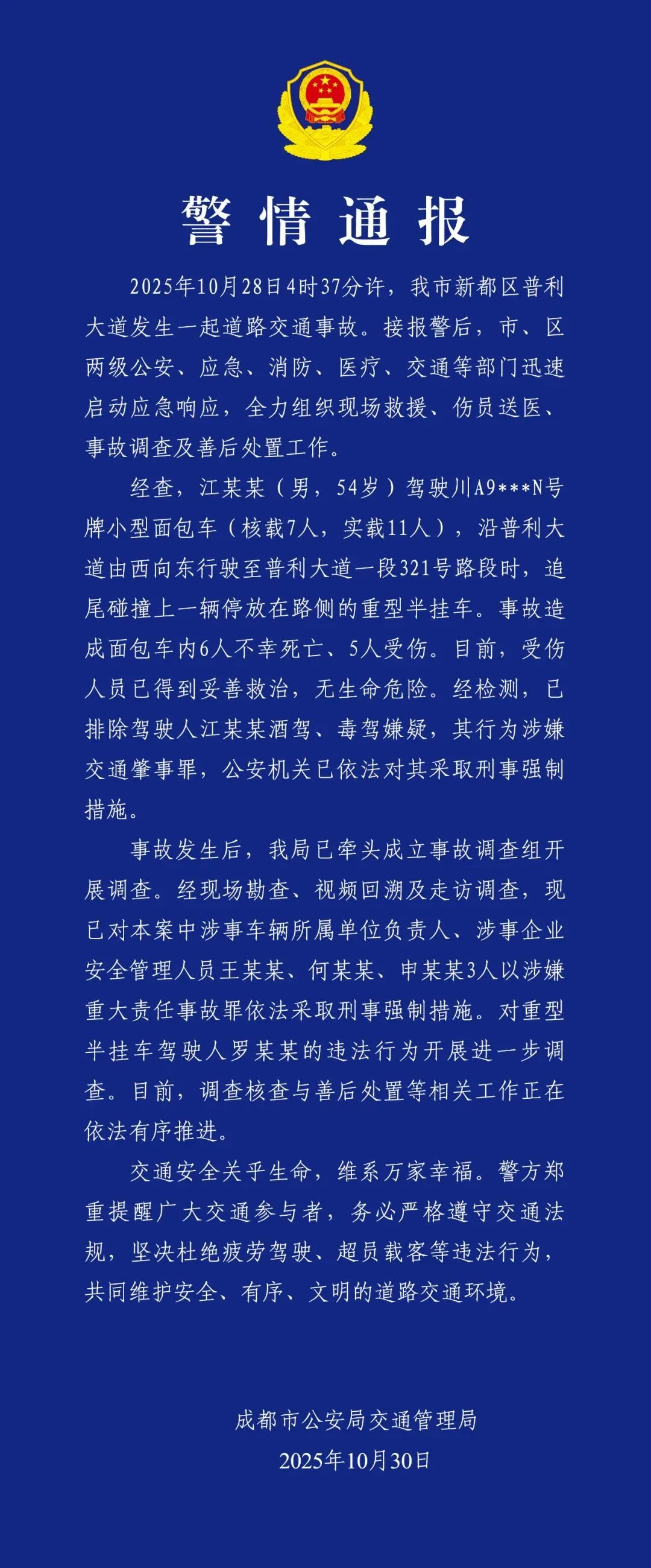 2025年10月30日,成都市公安局交通管理局发布警情通报: