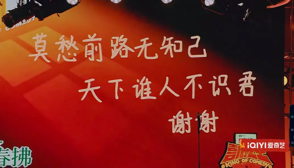 “莫愁前路无知己,天下谁人不识君”是他想留给观众的最后一句话。最开始上节目,他没什么压力,作为只讲了两年脱口秀的新人,他没有设定目标。比着比着,成绩超出预期,他忍不住开始想象自己会获得更大的知名度。