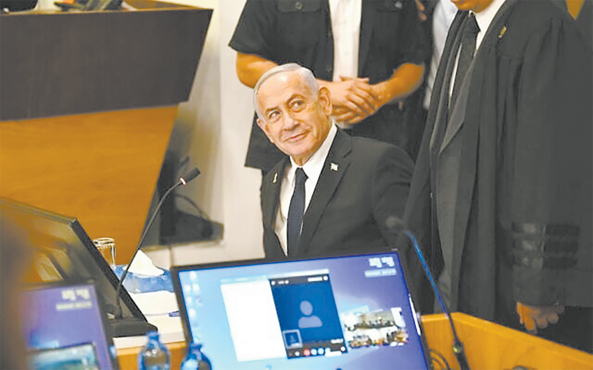 7月14日,以色列总理内塔尼亚胡在特拉维夫地区法院就贪腐案出庭作证。(图源:《以色列时报》)