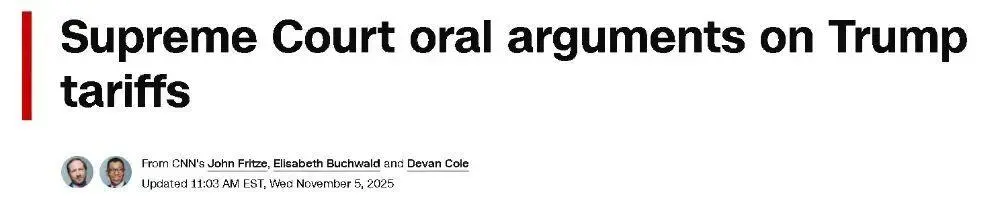 根据《纽约时报》、美国有线电视新闻网(CNN)和英国广播公司(BBC)等多家欧美媒体的报道,这场于北京时间11月5日深夜开始并一直持续到6日凌晨的美国最高法院的官司,事关美方如今单方面对全世界上百个国家和地区加征关税,到底是合法的,还是属于行政越权,并侵犯了企业的合法利益。