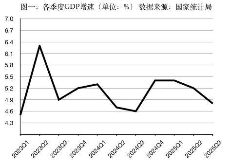 2025年前三季度,GDP同比增长5.2%,比上年全年和上年同期分别加快0.2、0.4个百分点。分季度看,2025年一、二、三季度GDP同比增速分别为5.4%、5.2%、4.8%。