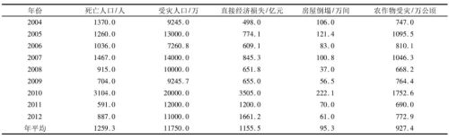 注:数据来自2004-2012年《中国气象灾害年鉴》