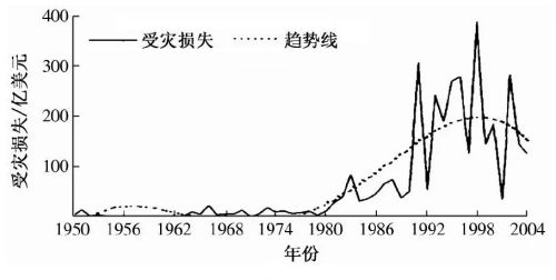 图3 全球1950 - 2004年重大洪水灾害受灾损失