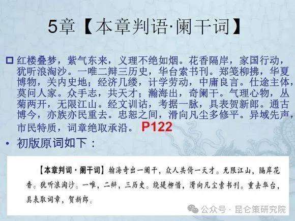 曰:红楼叠梦,紫气东来,义理不绝如烟。花香隔岸,家国行动,犹听浪淘沙。一唯二辩三历史,华台索书刊。郑笺柳拂,华夏博物,关内史地;经济几缕,计学劳动,中庸良言。仕途主体,莫问人家。众手志,共天才;瀚海出,奇阑干。气理心物,丛菊两开,无限江山。经文训诂,考据一脉,具表贺新郎。通古博今,亦族亦民重去。忠恕之间,滑向凡尘多修平。异域先声,市民特质,词章绝取承沿。
