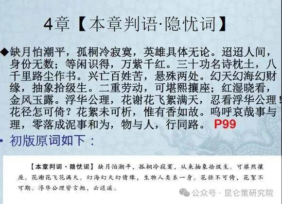 曰:缺月怕潮平,孤桐冷寂寞,英雄具体无论。迢迢人间,身份无数;等闲识得,万紫千红。三十功名诗枕土,八千里路尘作书。兴亡百姓苦,悬殊两处。幻天幻海幻财缘,抽象拾级生。二重劳动,可堪熙攘座;红湿晓看,金风玉露。浮华公理,花谢花飞絮满天,忍看浮华公理!花径怎可倚?花絮未可析,惟有香如故。呜呼哀哉事与理,零落成泥事和为,物与人,行同路。