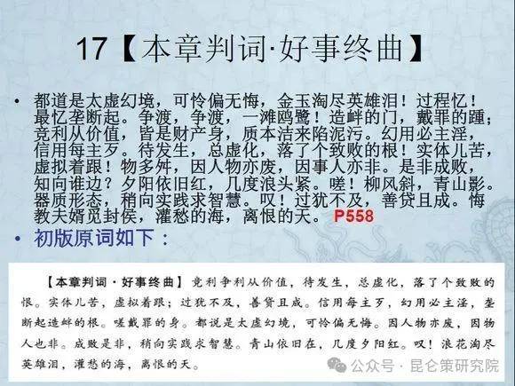 曰:都道是太虚幻境,可怜偏无悔,金玉淘尽英雄泪!过程忆!最忆垄断起。争渡,争渡,一滩鸥鹭!造衅的门,戴罪的踵;竞利从价值,皆是财产身,质本洁来陷泥污。幻用必主淫,信用每主歹。待发生,总虚化,落了个致败的根!实体儿苦,虚拟着跟!物多舛,因人物亦废,因事人亦非。是非成败,知向谁边?夕阳依旧红,几度浪头紧。嗟!柳风斜,青山影。器质形态,稍向实践求智慧。叹!过犹不及,善贷且成。悔教夫婿觅封侯,灌愁的海,离恨的天。