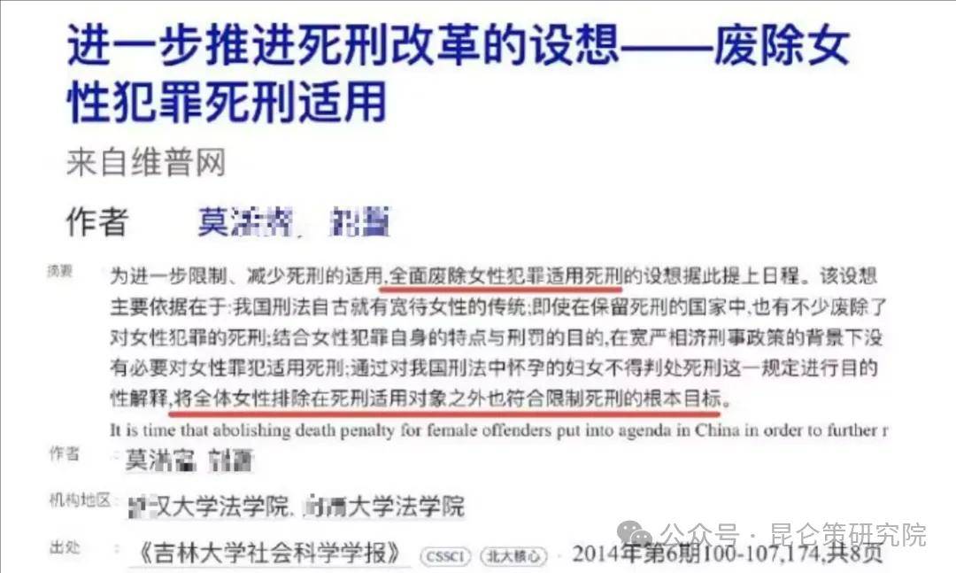 被曝光存在争议问题的不止郭某某,相关院校的法学院(美国基金会长期资助对象)的教授,也发表有所谓“取消女性死刑”的论文。