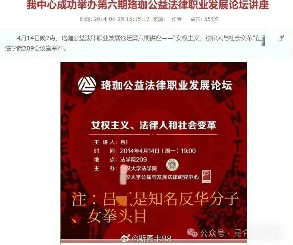 据悉,涉事学校曾经要求极端女权头目吕频等拳师赴校内开展教学交流活动,校内亦成立有女权组织。反动极端女权势力肖月等人,曾联合其校内的极端女权力量,在校内开展支持港废、声援极端女权的相关活动。