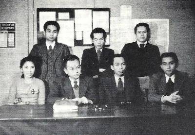 1940年在荷兰的印尼学生联合会部分领导人合影,前排左二为索里普诺(丽拉的丈夫)。该联合会曾募捐支持中国抗战 | 图片来源:islamadani.wordpress.com