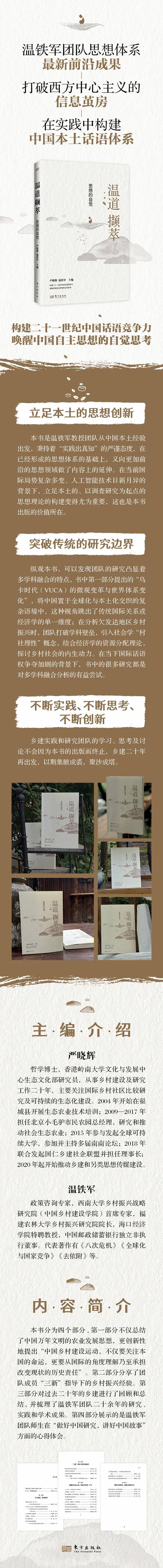 2021年在总结当代乡建二十年的会议上,我曾经说乡建应该体现的是“大音希声,大象无形”。这种守拙内敛的传统文化内涵在乡建工作中至今仍体现着。既然云学生们参与“温道撷萃”读书群的内修外炼皆有所得,也就应该与广大群外之众做更多交流,因此便有了结集出版的必要性。