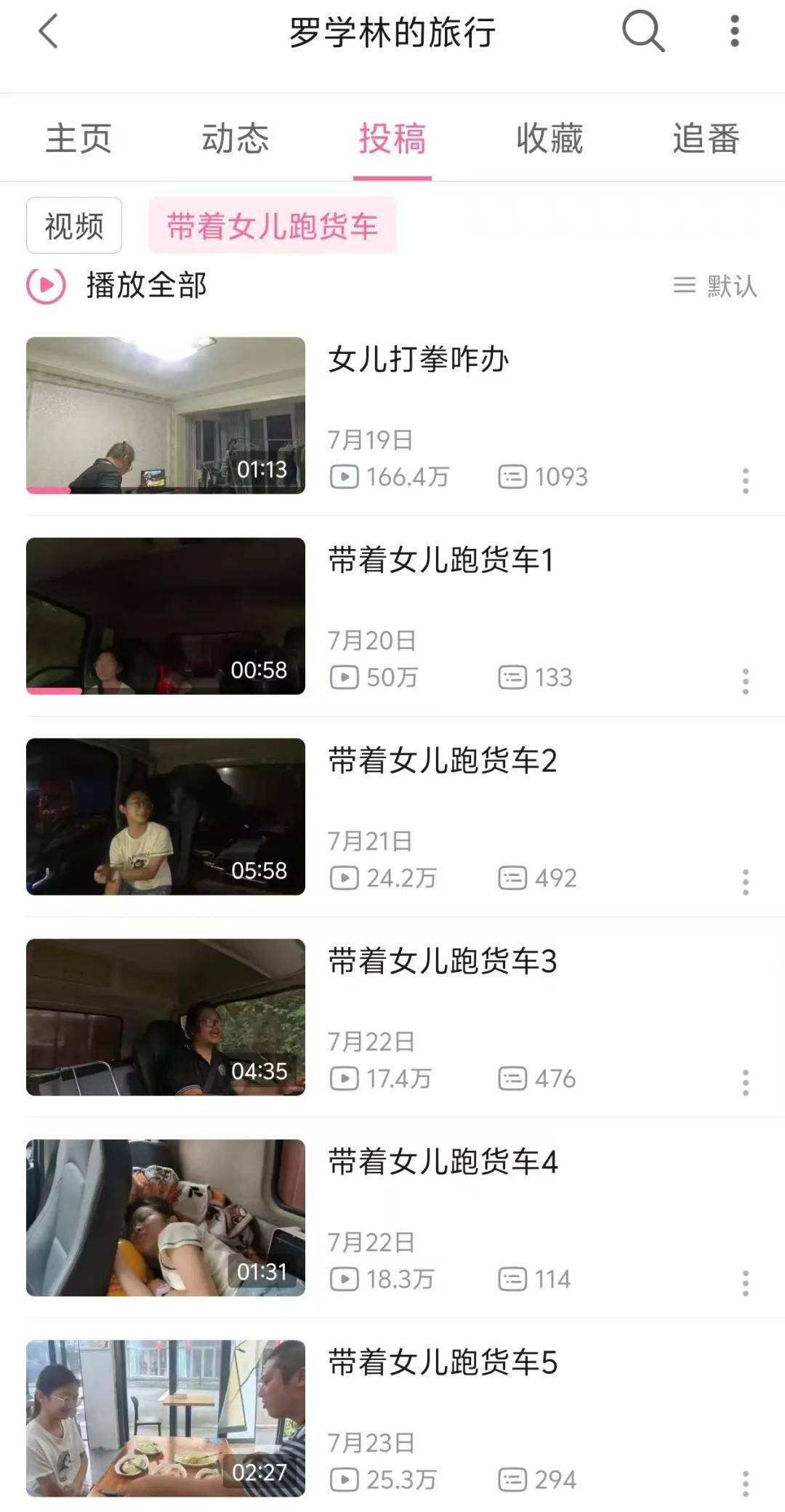 货运司机罗师傅在B站账号“@罗学林的旅行”分享了这个暑假“带着女儿跑货车”的系列视频,记录在朋友圈“打拳”的女儿经历了这趟旅行之后,如何从一开始的喊“生物爹”到如今为父亲钢琴弹奏《父亲》的过程。