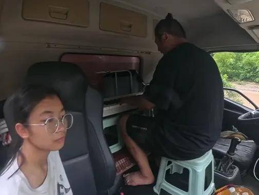 在收拾车子的过程中,罗师傅会让孩子尽量地做一些力所能及的工作,女儿从一开始的不习惯到最后成了一名好帮手,不仅帮爸爸收拾车子、记账,还能在爸爸中途休息的时候帮忙看着车子和时间,行车途中跟爸爸摆龙门阵让爸爸不犯困;