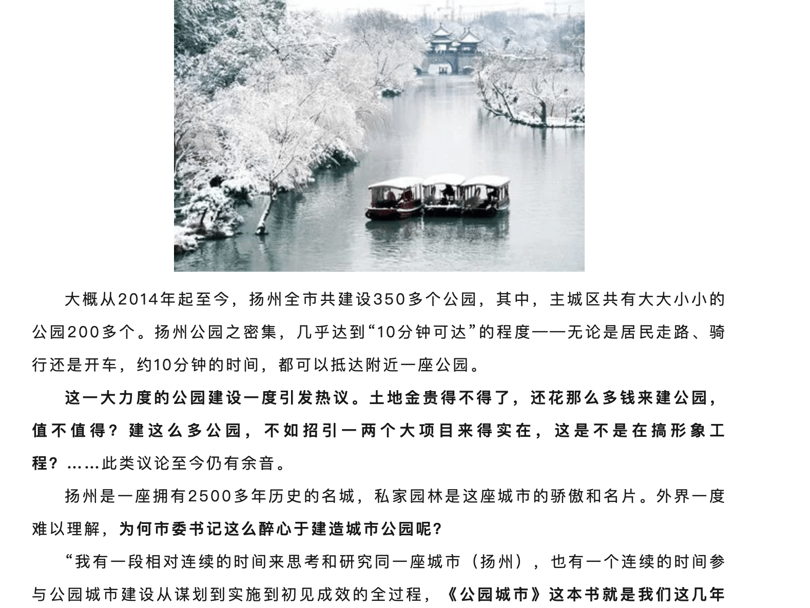 哲木观察注意到;谢正义在扬州当主要领导的时候,推动搞“公园城市”建设,建了350多座公园,还搞“10分钟公园圈”。