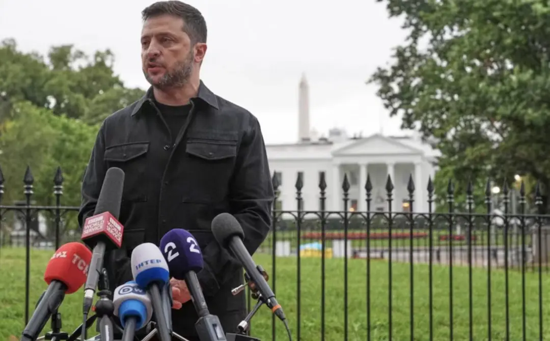 没办法的泽连斯基,只能在白宫外搭了一张小桌子,举行了一场特别的记者会。