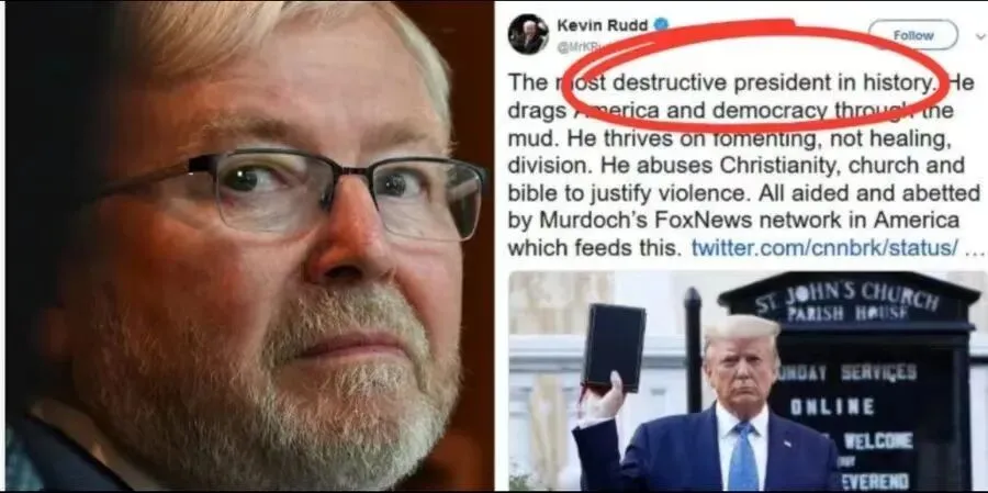 陆克文曾痛批特朗普是“西方的叛徒”,“历史上最具破坏性的总统”,指责他将美国和民主搞得一塌糊涂。