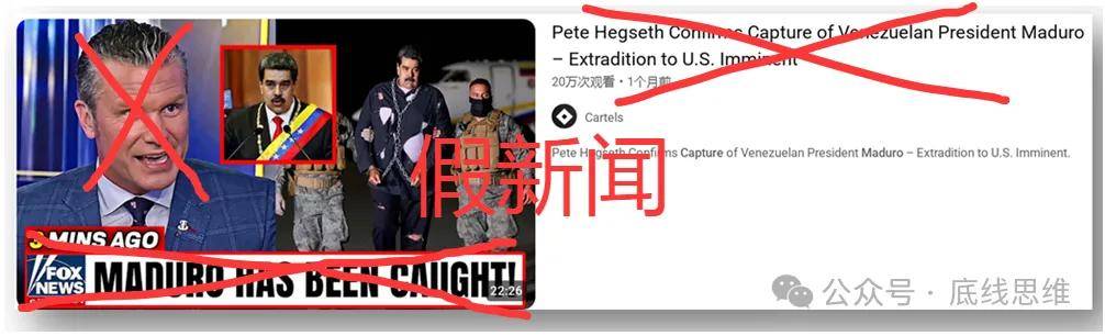 标题直译:“赫格塞斯确认委内瑞拉总统马杜罗被俘获——即将引渡美国”(假新闻)