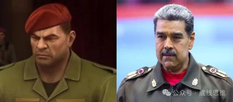 希望我国动画工作室下次塑造雷迪亚兹(左)形象时,注意区分古巴和委内瑞拉军便服的配色剪裁——由于两国军事文化脱离美军影响的年代不同,古军延续了美军早期OG-107军服偏暖的草绿色,古巴领、无拉链(左);委军则延续了美军A级常服的冷绿色,甘蔗枝领花配一对咖啡树枝指向红星的肩章为马杜罗的总司令军衔(右)。