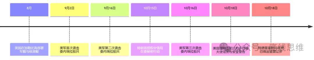2025年美委关系部分紧张事件至截稿时的Mermaid时间线图(以当地日期为准)