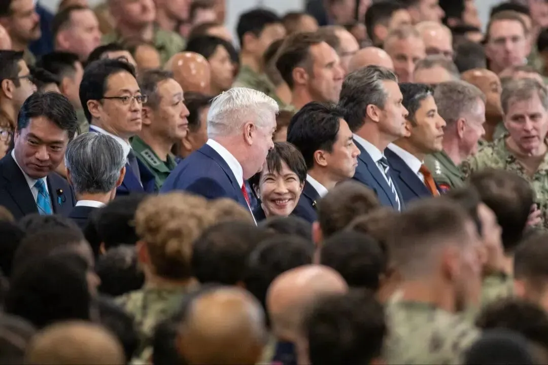 第一幕,在横须贺的美国“华盛顿”号航母上,特朗普向台下美军士兵介绍:这个女人是一位赢家……她是日本历史上第一位女首相。