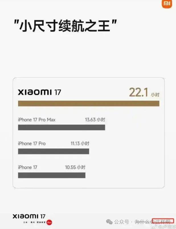 同样,也是小米的手机上,黑白分明的大字写着“小尺寸续航之王”,而却在边缘地脚,在用了放大镜都难以看清楚的字写着“目标:小尺寸续航之王”