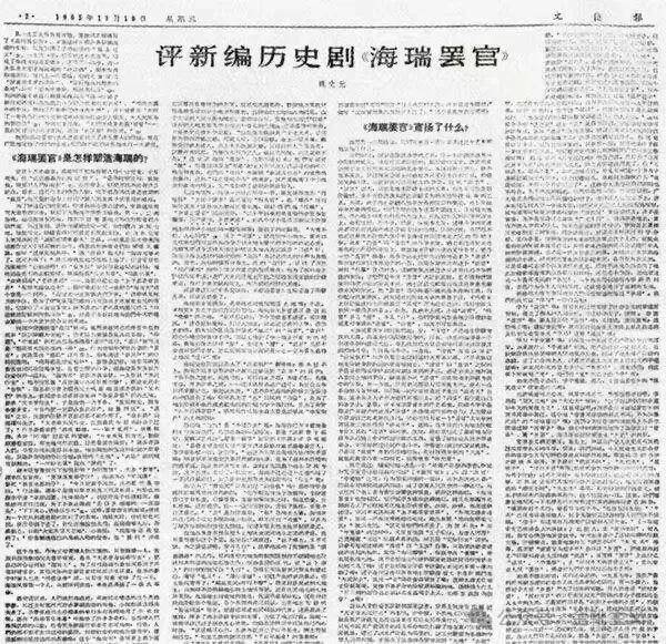 一年后的11月10日,上海《文汇报》发表了文元同志主笔的《评新编历史剧〈海瑞罢官〉》。