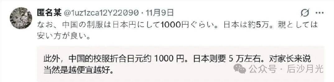 看到薛剑评论区的斗争大方向不对劲,日本大V就来引导大家把视线转移到中国学生的校服上。